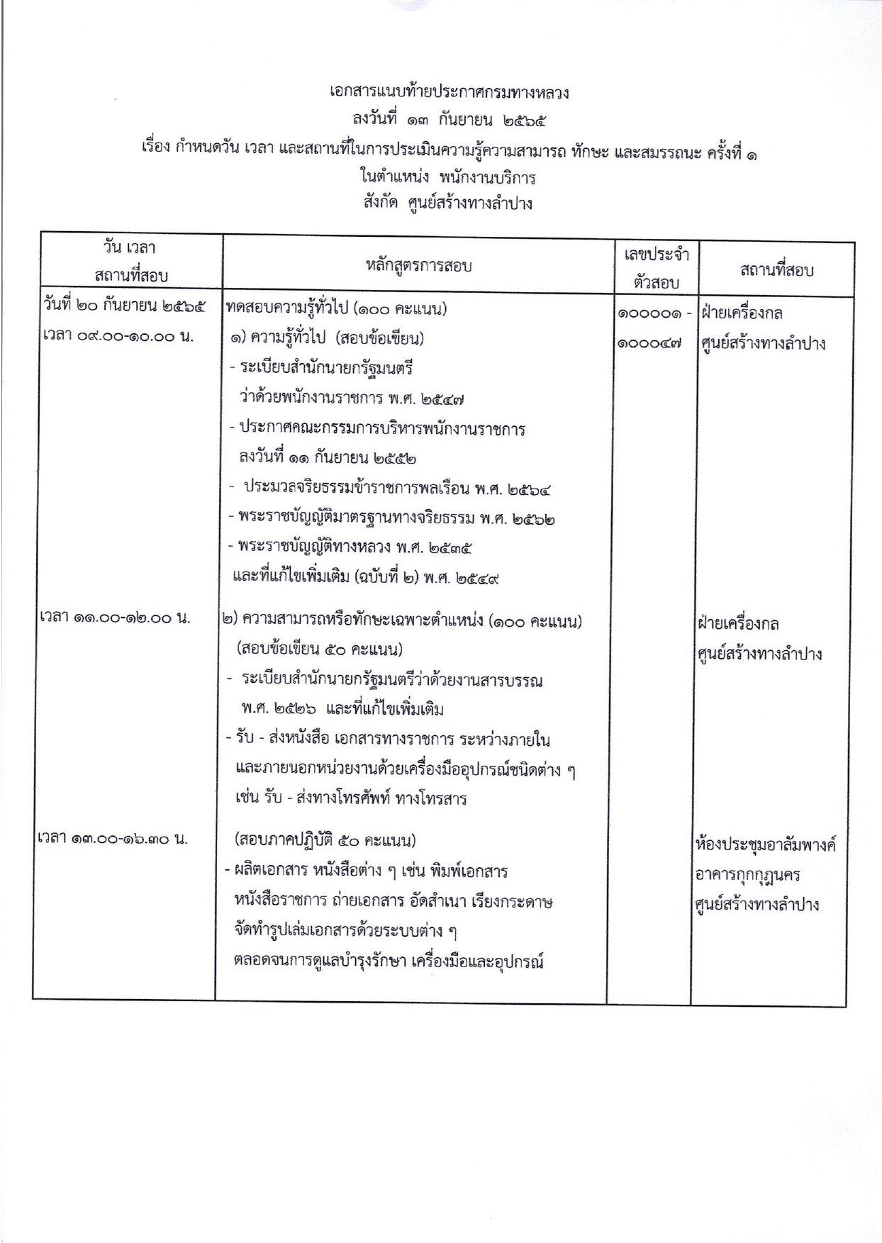 กำหนดวันและสถานที่ประเมินสมรรถนะเพื่อเลือกสรรเป็นพนักงานราชการทั่วไป