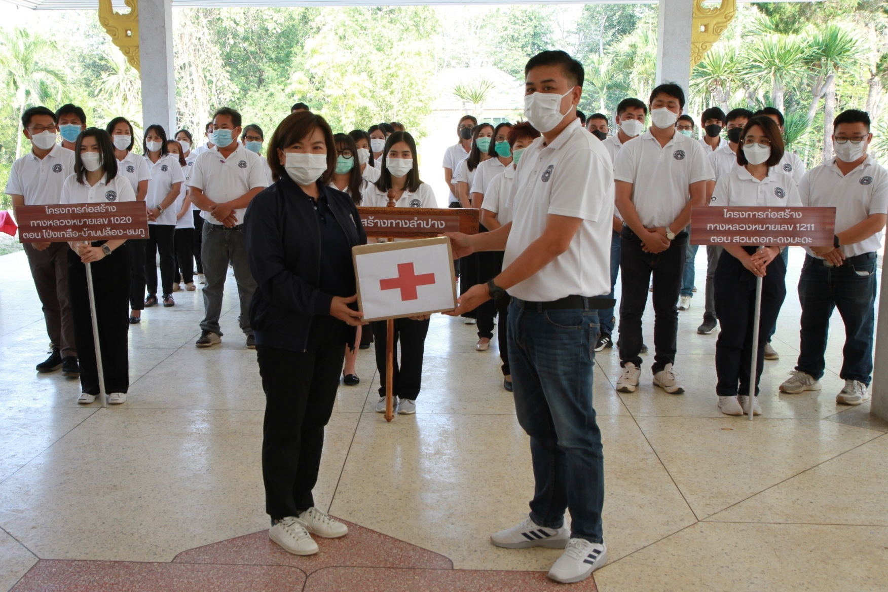 นายกิตติ์ธเนศ โลหิตกาญจน์ ผู้อำนวยการศูนย์สร้างทางลำปาง พร้อมคณะผู้บริหาร ข้าราชการ และเจ้าหน้าที่ในสังกัด ร่วมต้อนรับคณะตรวจราชการ นายดนัย เรืองสอน วิศวกรใหญ่ด้านอำนวยความปลอดภัย เพื่อตรวจเยี่ยมและสร้างขวัญกำลังใจให้กับผู้ปฏิบัติงาน ประจำปี 2566 โดยมอบยาและเวชภัณฑ์ให้กับเจ้าหน้าที่ศูนย์สร้างทางลำปาง โครงการฯ ทล.1020 ตอน โป่งเกลือ - บ้านปล้อง – ชมภู และ โครงการฯ ทล.1211 ตอน สวนดอก - ดงมะดะ ณ ศาลากาแลรัตน์ ศูนย์สร้างทางลำปาง