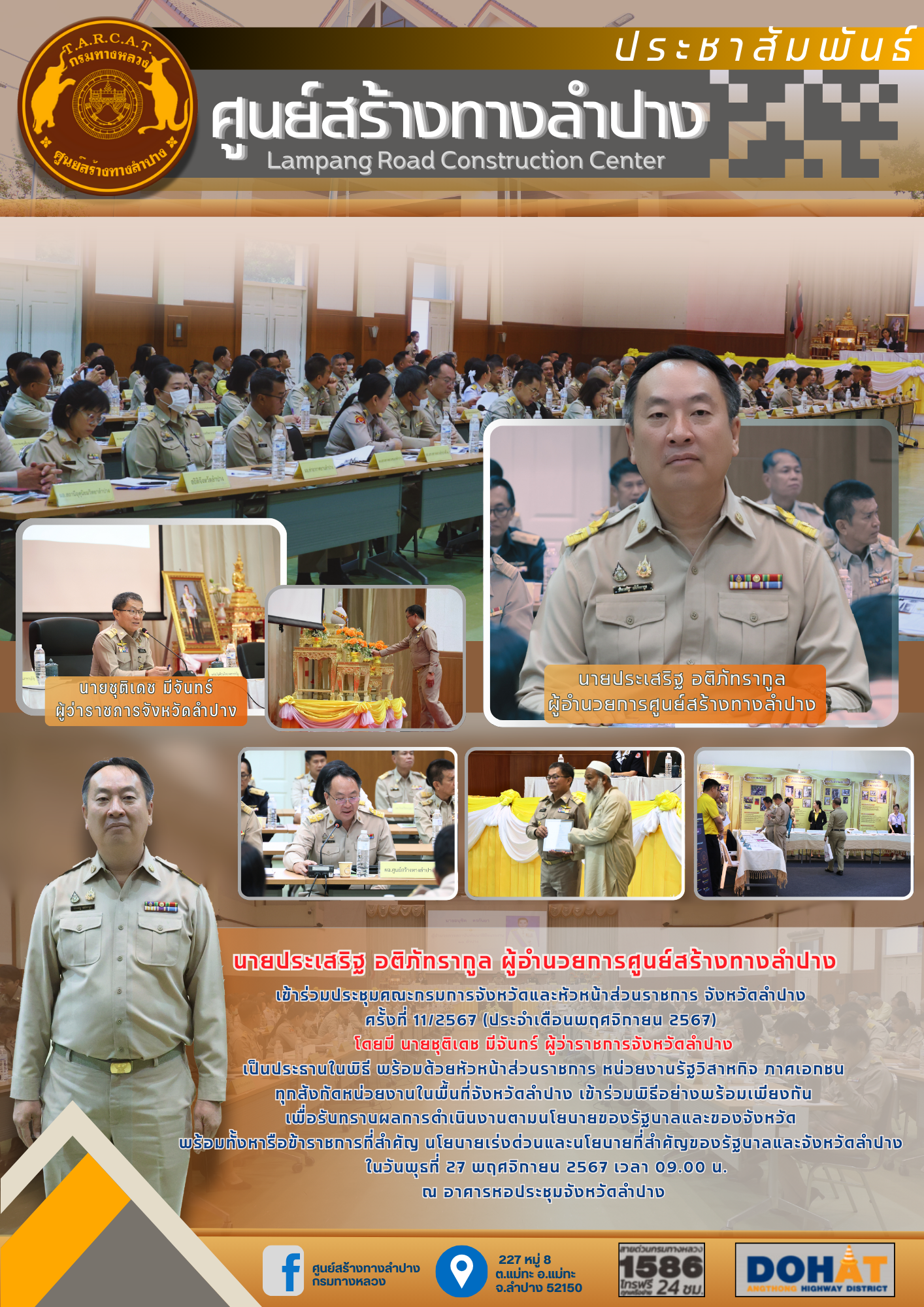 เข้าร่วมประชุมคณะกรรมการจังหวัดและหัวหน้าส่วนราชการ จังหวัดลำปาง ครั้งที่ 11/2567 (ประจำเดือนพฤศจิกายน 2567)