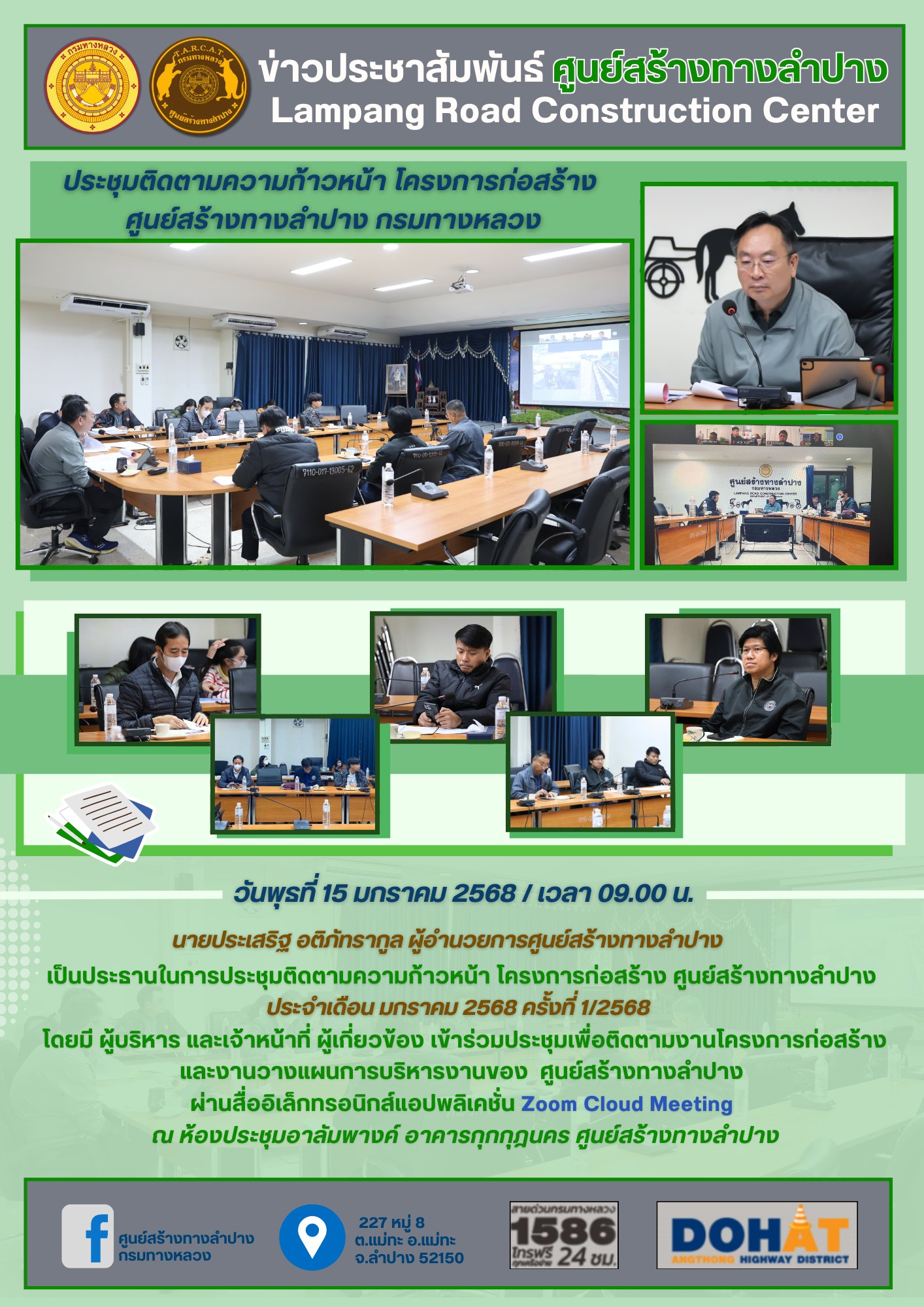 เป็นประธานในการประชุมติดตามความก้าวหน้า โครงการก่อสร้าง ศูนย์สร้างทางลำปาง ประจำเดือน มกราคม 2568 ครั้งที่ 1/2568