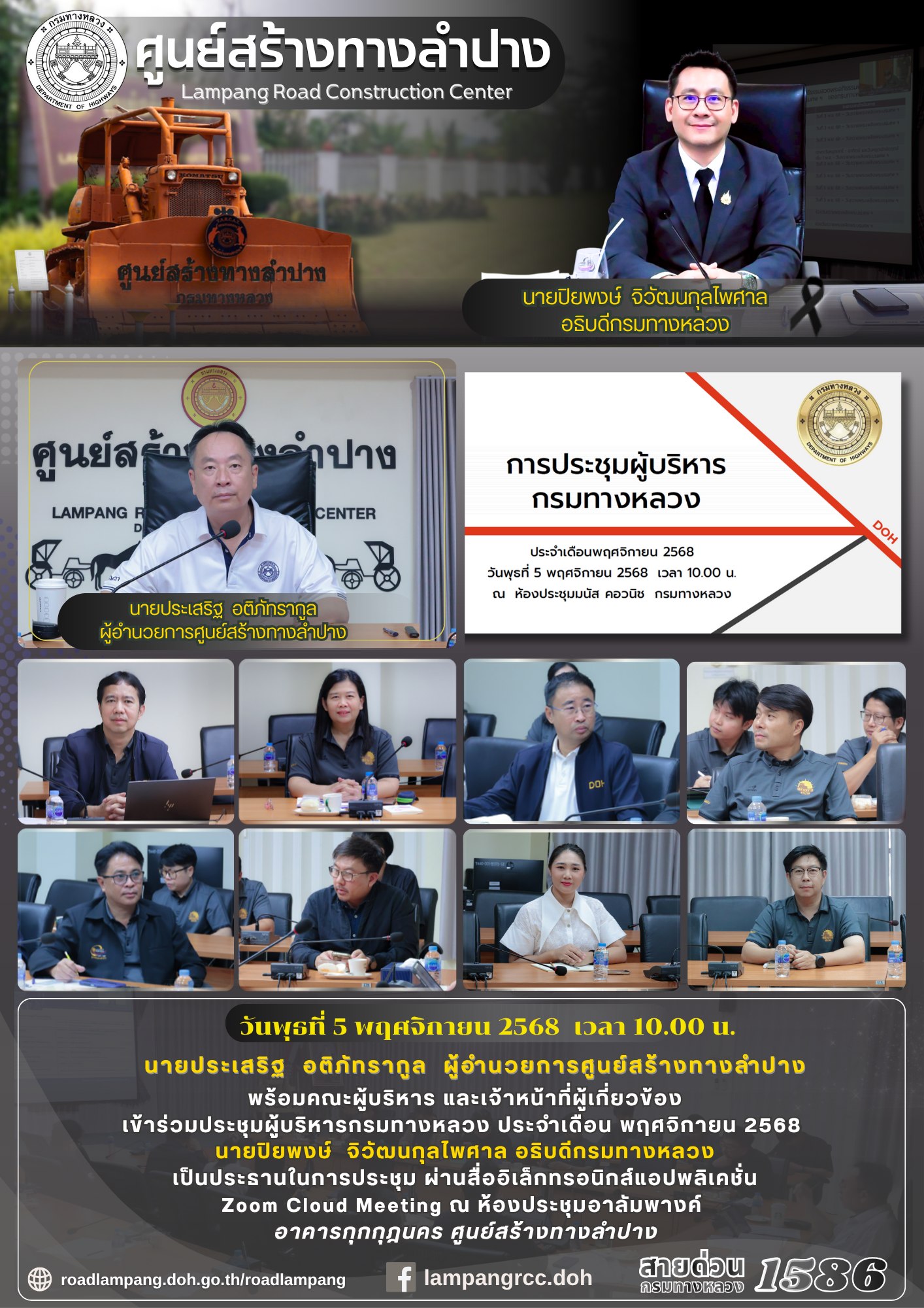 พร้อมคณะผู้บริหาร และเจ้าหน้าที่ผู้เกี่ยวข้อง เข้าร่วมประชุมผู้บริหารกรมทางหลวง ประจำเดือน พฤศจิกายน 2568 โดยมี นายปิยพงษ์ จิวัฒนกุลไพศาล อธิบดีกรมทางหลวง